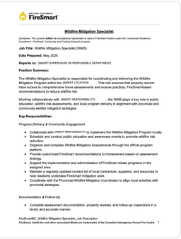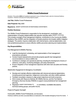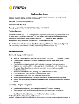 Job Description - Firesmart Coordinator | Please use this fillable and sign-able job description PDF for the role of FireSmart Coordinator. | 06/13/25 | View |