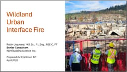 Wildland Urban Interface Fire (Power Hour Presentation March 2025) | This resource is the presentation that Robin Urquhart, Senior Consultant with RDH Building Science Inc., presented to the FireSmart Power Hour audience in March of 2025. | 03/12/25 | View |